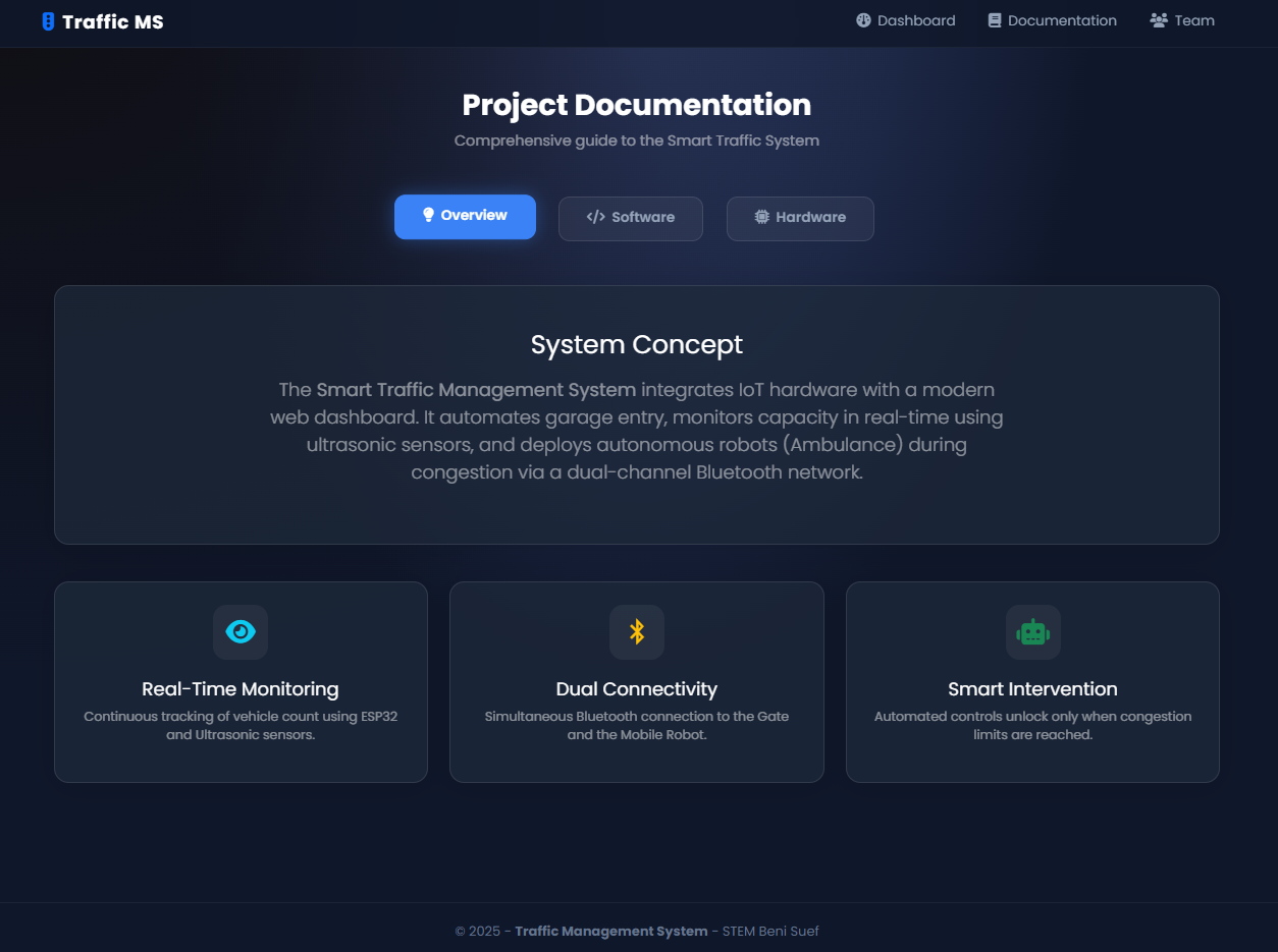 نبذة عن المشروع: انطلاقاً من إيماننا في مسك سمارت MSC-Smart بأهمية دعم الابتكار والشباب، قمنا بتنفيذ الجانب البرمجي لمشروع تخرج متميز لطلاب مصريين. تمثل دورنا في بناء "العقل المدبر" للنظام، وهو عبارة عن منصة ويب متطورة تتحكم في وحدات الهاردوير والروبوتات التي صممها الطلاب.